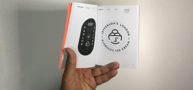 Una recopilación de logotipos, marcas comerciales y símbolos de alimentos y bebidas de todo el mundo formados por elementos como frutas, verduras, donas, hamburguesas, perritos calientes, platos, vasos y cubiertos.